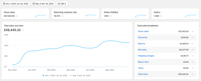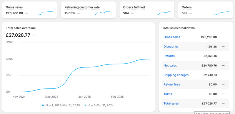 We launched and scaled Meta campaigns from scratch, beginning with a structured creative and audience testing phase. After identifying winning combinations, we gradually increased spend while maintaining a strong and stable ROAS. Through a full-funnel strategy and consistent optimisation, the brand generated £27K+ in revenue within 5 months, growing profitably from testing phase to aggressive scaling without sacrificing efficiency.